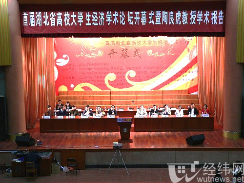 4月24日晚,“两型社会•武汉城市圈”暨首届湖北省高校大学生经济学术论坛开幕式在我校西院大礼堂举行。